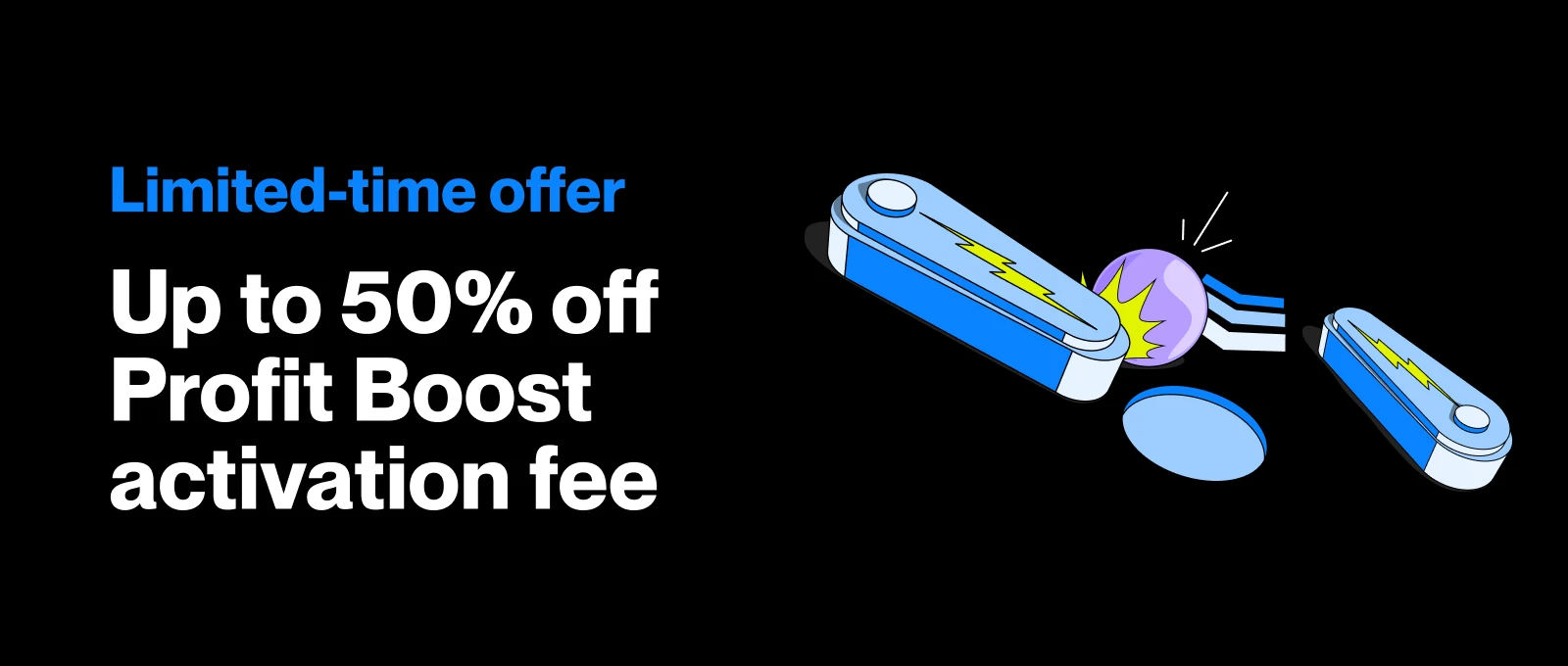 Double your profits on successful trades for BTC, ETH, XRP, and SOL perpetual futures without increasing your losses with Profit Boost. Try it out now!