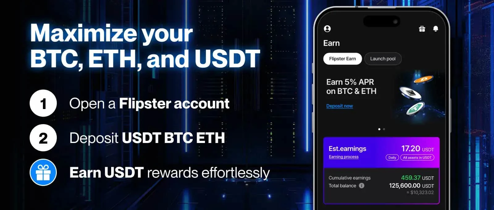 Earn on-chain returns seamlessly on Flipster while trading perpetuals. No wallet setup, no bridging.